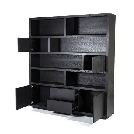 Schrank links Metall Holz, Bücherschrank Holz, Schrank mit drei Schubladen, Breite 55 cm