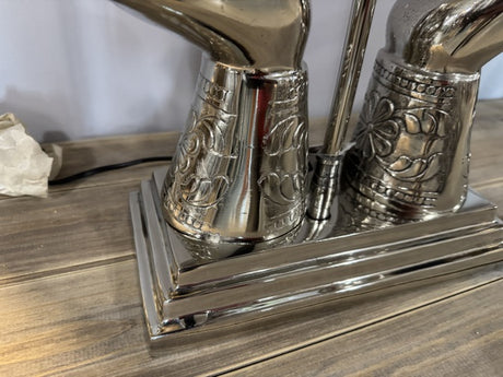 Tischlampe Geweih Silber mit Lampenschirm weiß, Tischleuchte Silber weißer Lampenschirm