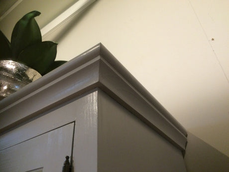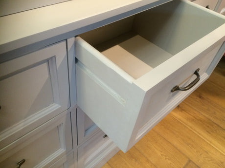 Vitrine grau, Geschirrschrank grau Massivholz, Küchenschrank grau Landhaus, Breite 185 cm