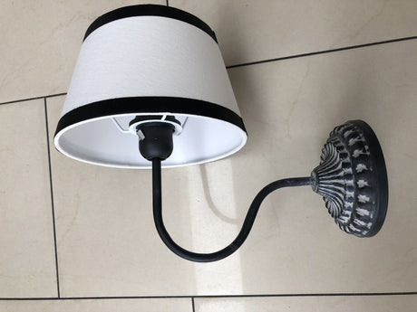 Wandlampe mit Lampenschirm, Wandleuchte grau Lampenschirm weiß-schwarz