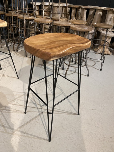 Barstuhl Holz, Barshocker Metall-Gestell, Barhocker Industriedesign, Höhe 67 cm