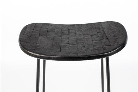 Barstuhl schwarz Holz-Sitz, Barhocker schwarz Gestell schwarz-Metall, Sitzhöhe 76 cm