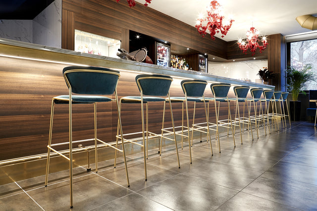 Barstuhl Gold gepolstert, Barstuhl petrol stapelbar Gold, Sitzhöhe 76 cm