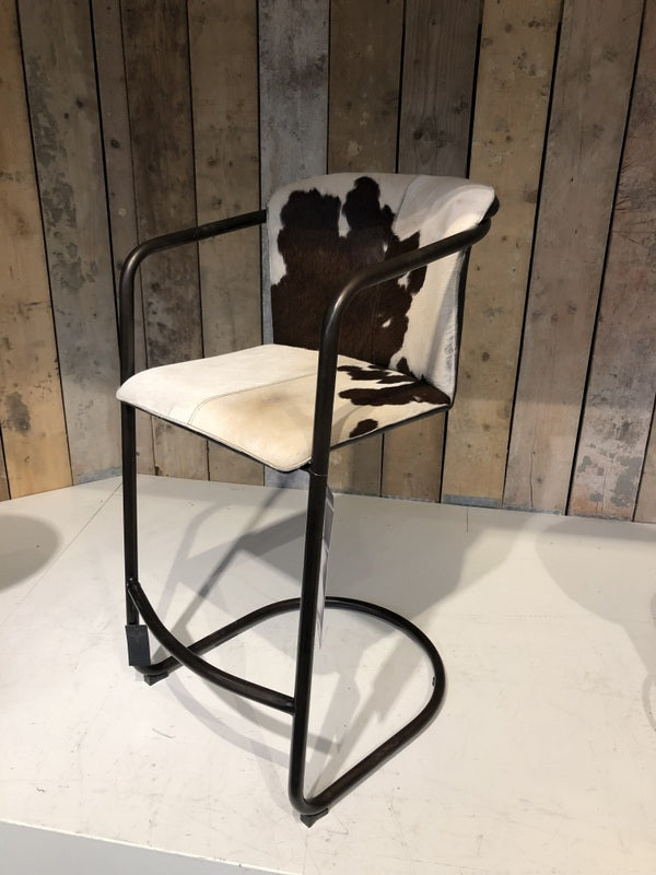 Barstuhl Kuhfell schwarz-weiß-braun Industriedesign, Barstuhl Industriedesign , Sitzhöhe 65 cm ist auf Lager und wird versandt, sobald es wieder verfügbar ist