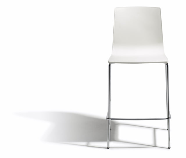 Barstuhl weiß-leinen Kunstsotff, Barstuhl stapelbar, Barstuhl verchromtes Gestell, Sitzhöhe 65 cm