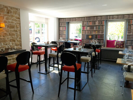 Barstuhl rot gepolstert, Barstuhl schwarz stapelbar, Sitzhöhe 76 cm