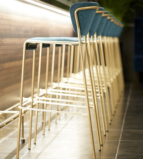 Barstuhl Gold gepolstert, Barstuhl petrol stapelbar Gold, Sitzhöhe 76 cm