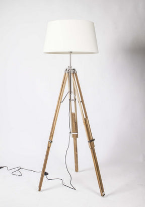 Stehlampe mit Lampenschirm creme, Stehlampe Dreifuß Naturholz