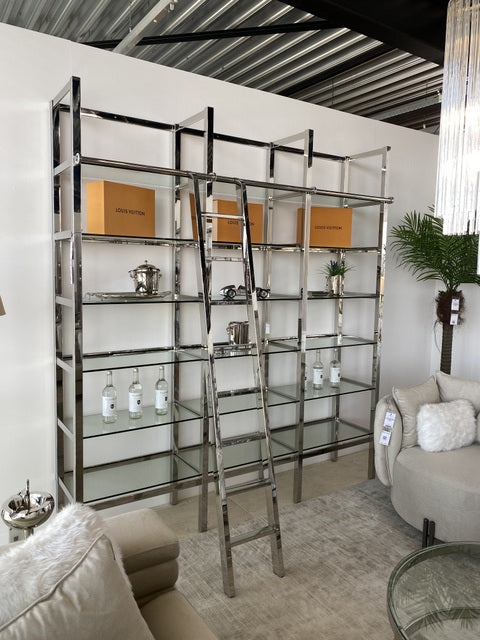 Bücherregal Silber, Regal Glas Metall verchromt, Bücherregal Glas, Breite 223 cm