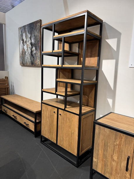 Regal Schrank Teak, Bücherregal Massivholz Teak, Breite 90 cm