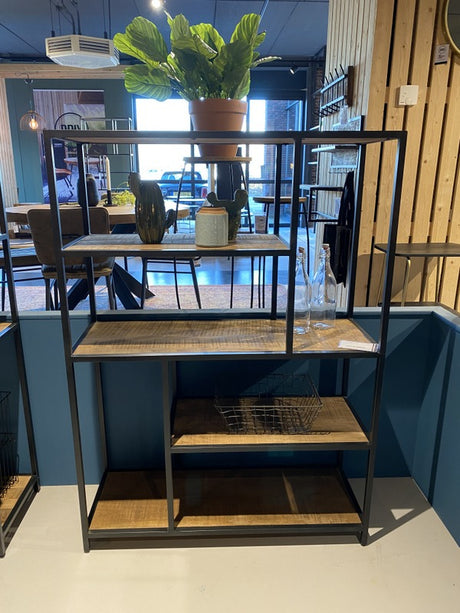 Schrank-Regal Altholz braun, Regal schwarz Metall, Schrank Industriedesign, Breite 120 cm