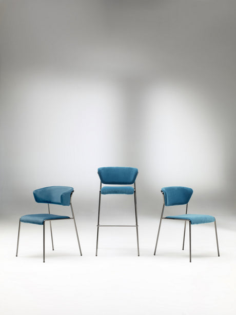 Design Stuhl chrom, Stuhl stapelbar, Konferenzstuhl, blau, Besucherstuhl, Essstuhl