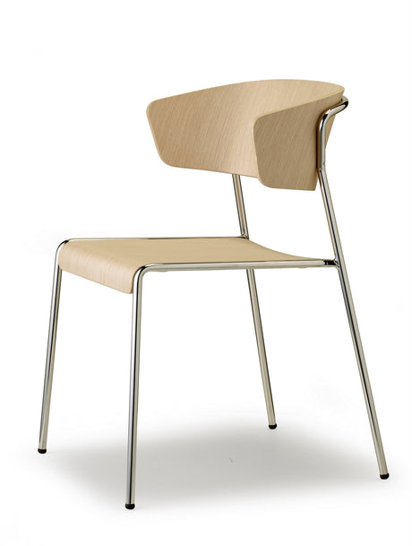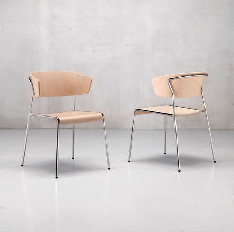 Design Stuhl chrom, Stuhl stapelbar, Konferenzstuhl, Holz, Besucherstuhl, Natur