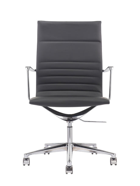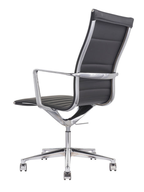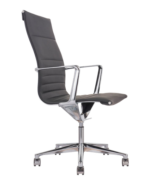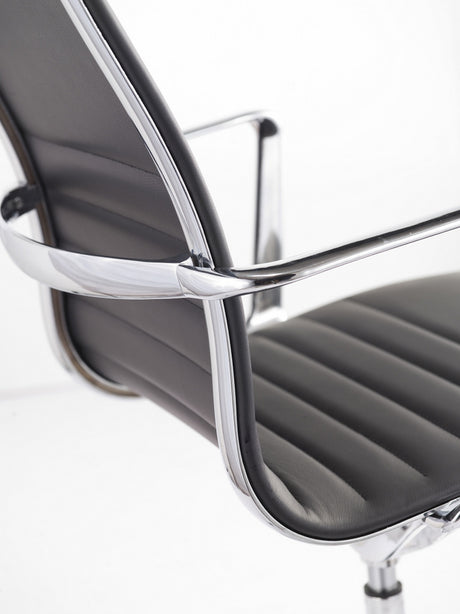 Designer Chefsessel schwarz Echtleder Aluminium, Bürostuhl schwarz