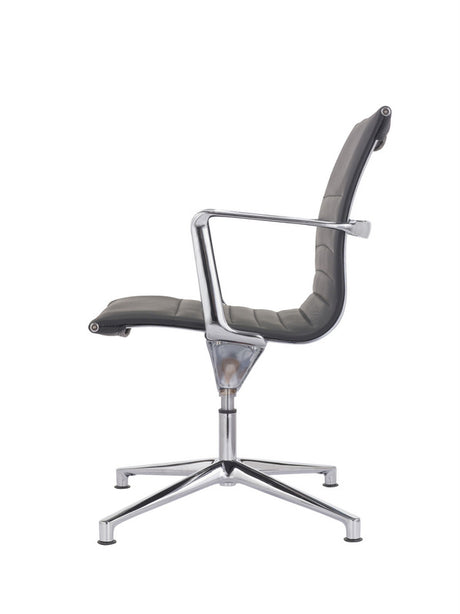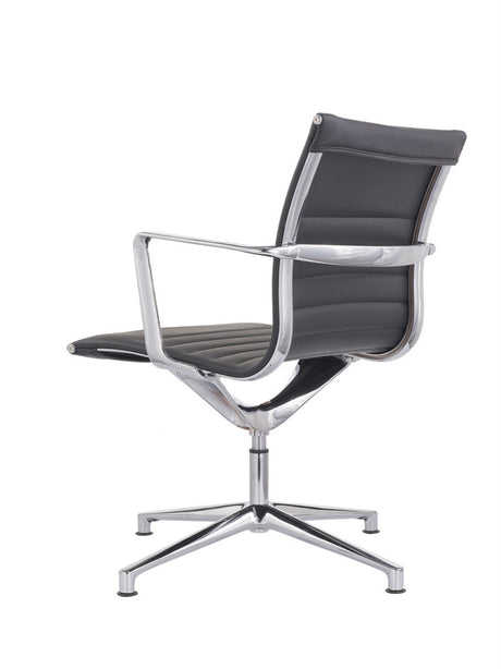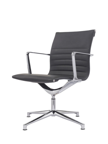 Konferenzstuhl schwarz Deluxe Echtleder Aluminium-Gestell, Besucherstuhl schwarz, Bürostuhl schwarz