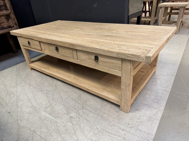 Altholz Couchtisch Naturholz, Couchtisch mit Schubladen Altholz, Länge150 cm ist auf Lager und wird versandt, sobald es wieder verfügbar ist
