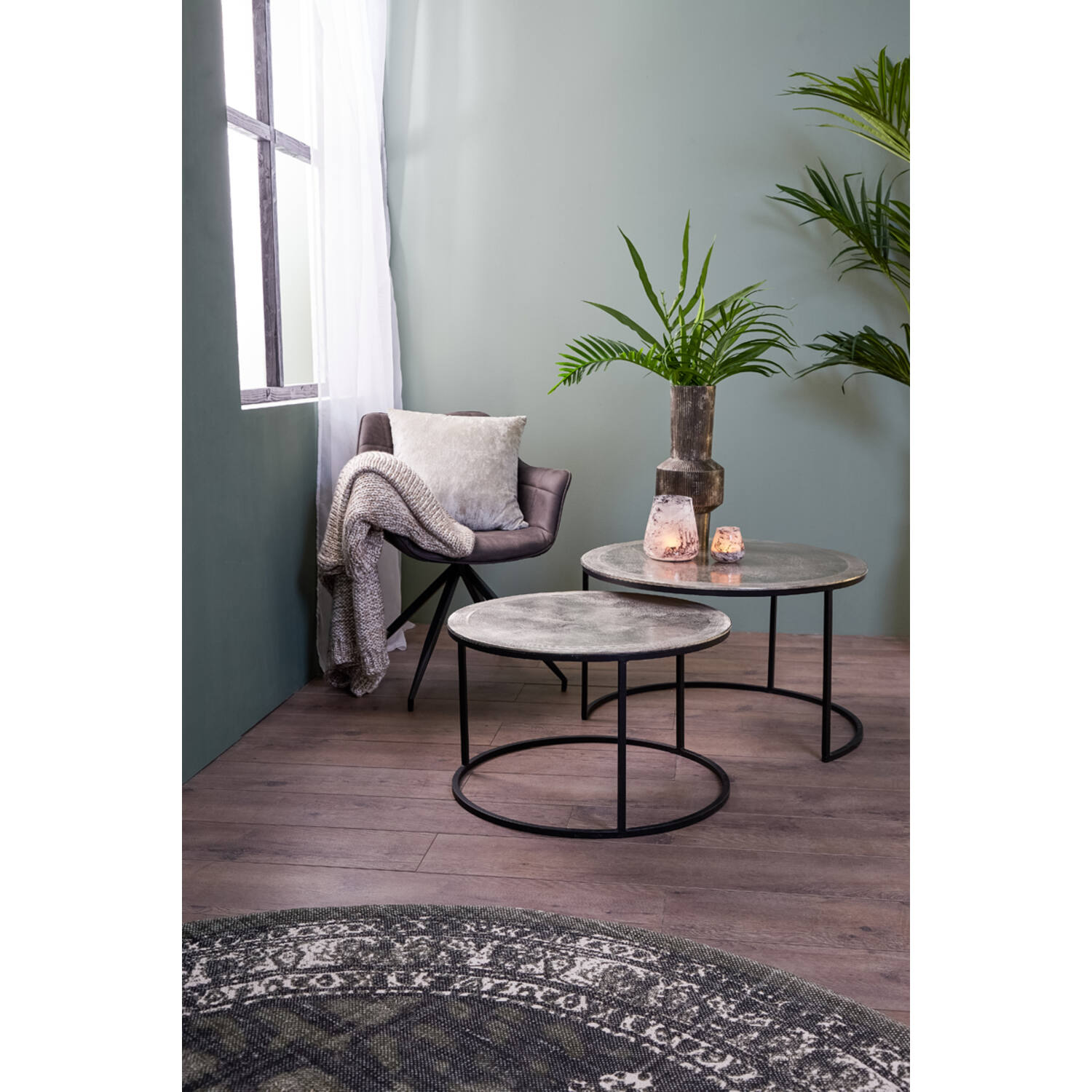 Couchtische 2er Set Metall Silber-schwarz, Couchtisch schwarz Metall, Durchmesser 75 cm