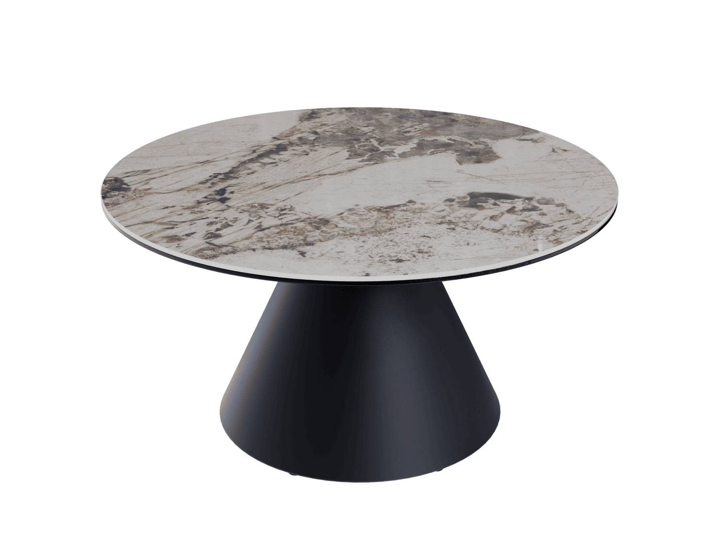 Couchtische weiß-braun Marmoroptik Keramik, runder Couchtisch Gold Keramik, Durchmesser 75 cm