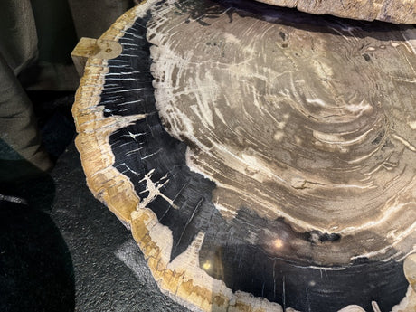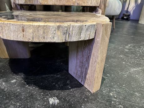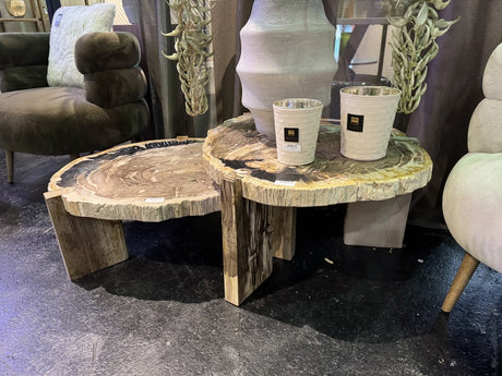 Couchtisch Holzstein, 2er Set Couchtisch beige Unikat, Durchmesser 75-85 cm