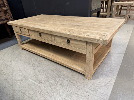 Altholz Couchtisch Naturholz, Couchtisch mit Schubladen Altholz, Länge150 cm