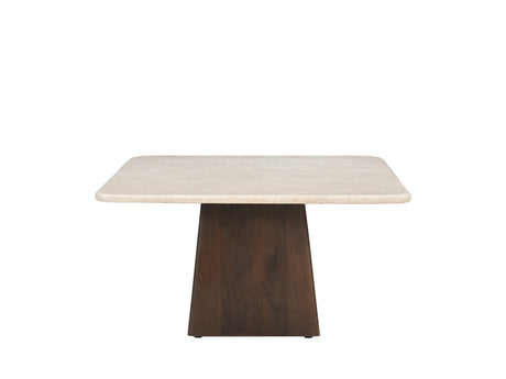 Couchtisch Marmor-Tischplatte beige-weiß , Couchtisch beige-braun, Maße 75x75 cm