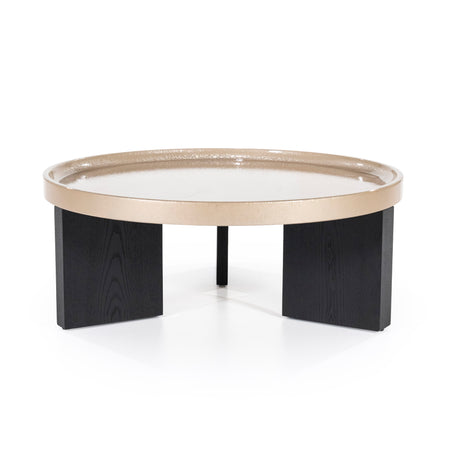 Couchtisch rund beige-schwarz, runder Couchtisch beige, Durchmesser 110 cm