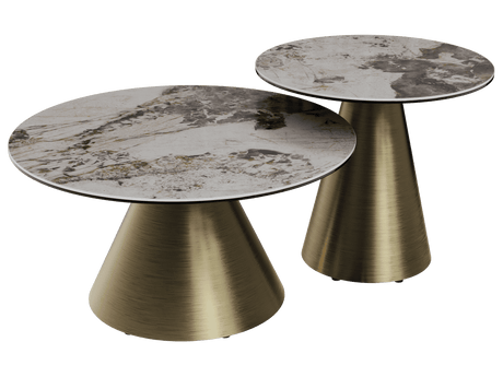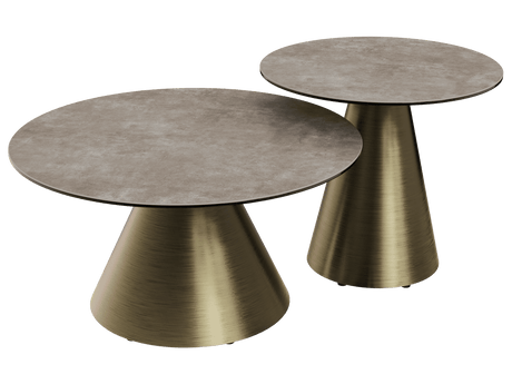 Couchtische taupe Marmoroptik Keramik, runder Couchtisch Gold Keramik, Durchmesser 75 cm