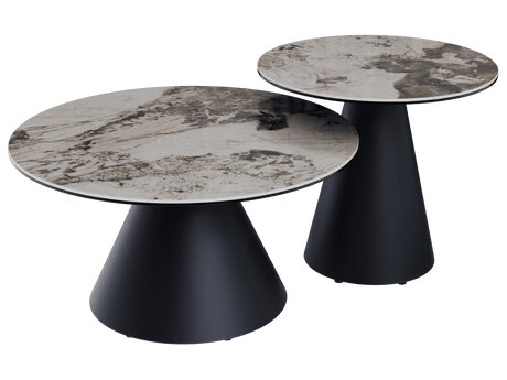 Couchtische weiß-grau Marmoroptik Keramik, runder Couchtisch schwarz Keramik, Durchmesser 75 cm