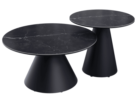 Couchtische anthrazit-grau Marmoroptik Keramik, runder Couchtisch schwarz Keramik, Durchmesser 75 cm