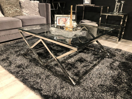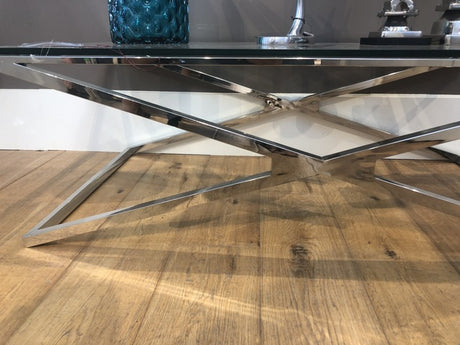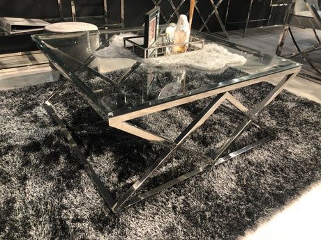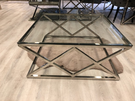 Couchtisch Silber, Glas Couchtisch verchromt, Maße 100 x 100 cm
