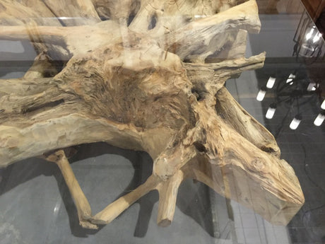 Couchtisch Wurzelholz, Tisch Massivholz und Glas, Länge 120 cm