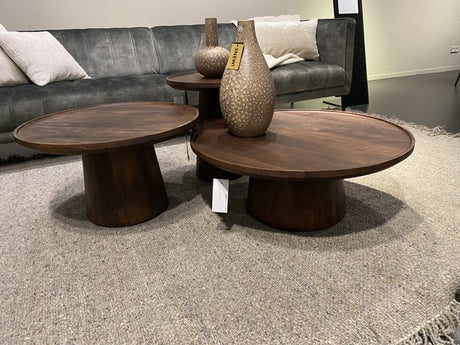 Couchtisch rund Naturholz, 3-er Set runder Couchtisch Eiche furniert, Durchmesser 45-80 cm