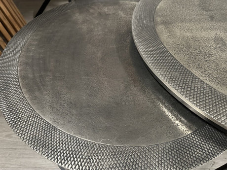 Metall Couchtisch Silber, runder Couchtisch 2er Set, Durchmesser 65-74 cm