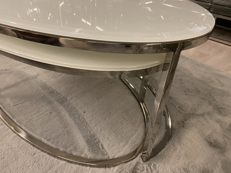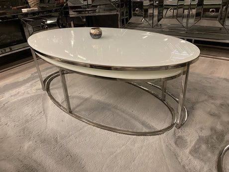 Couchtisch oval, 2er Set Couchtisch Silber oval, Glas Couchtisch
