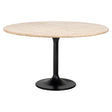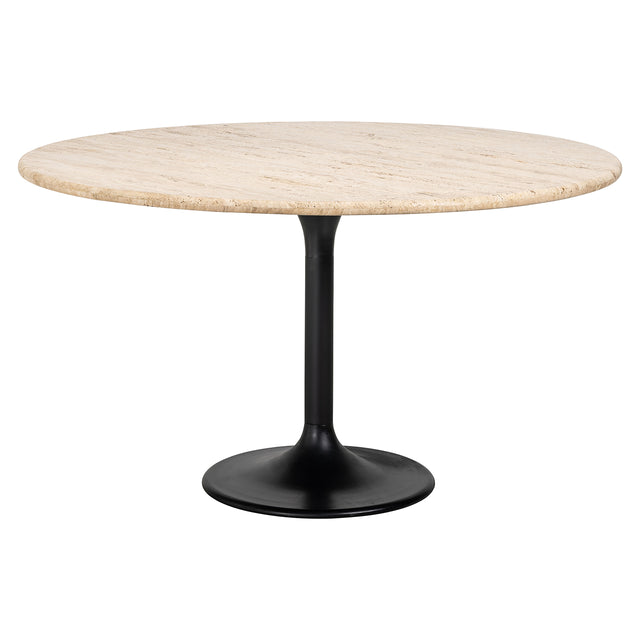 Runder Esstisch Travertinstein, Tisch Naturstein rund Metallfuß, Esstisch rund schwarz, Breite 140 cm