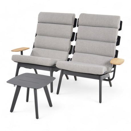 Gartensessel grau, 2 x Loungesessel für zwei, Gartensessel mit Auflagen
