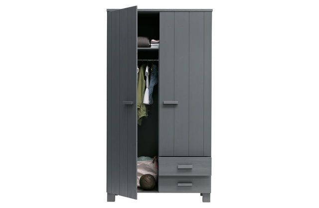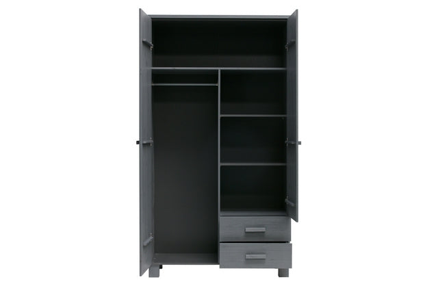 Kleiderschrank grau Holz massiv, Schrank grau, Breite 111 cm