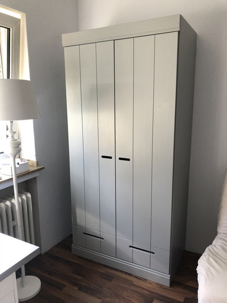 Kleiderschrank grau Holz massiv, Schrank grau, Breite 111 cm