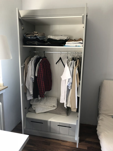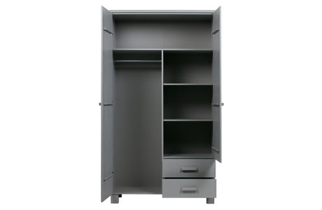 Kleiderschrank grau mit 2 Schubladen, Schrank grau, Breite 94 cm