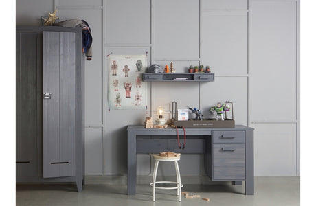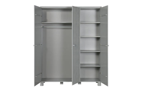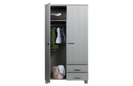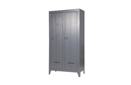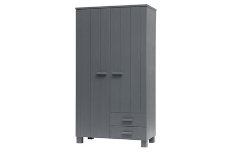 Kleiderschrank grau, Schrank grau Massivholz, Kinderzimmerschrank grau, Breite 122 cm