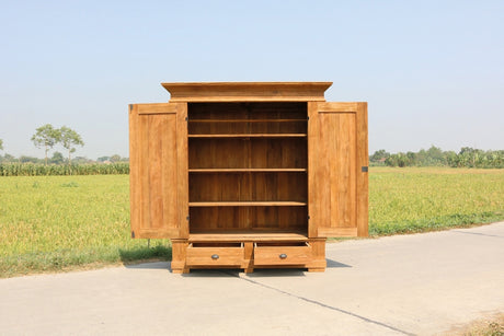 Kleiderschrank Teakholz, Schrank Teakholz Landhaus, Garderobenschrank, Breite 160 cm