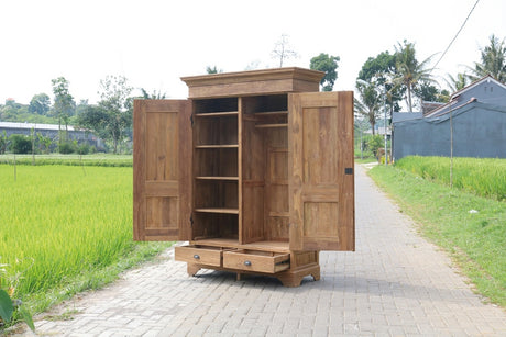 Schrank Teakholz, Kleiderschrank Teakholz Landhaus, Breite 170 cm