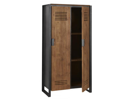 Schrank im Industriedesign, Kleiderschrank aus Metall und Holz, Breite 80 cm