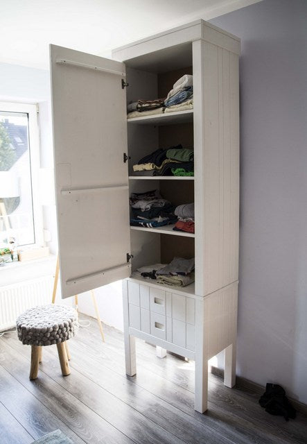 Kinderzimmerschrank weiß, Schrank weiß Massivholz, Kleiderschrank weiß Massivholz, Breite 73 cm