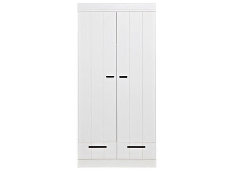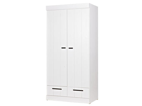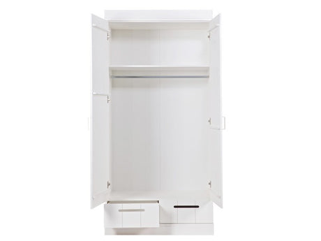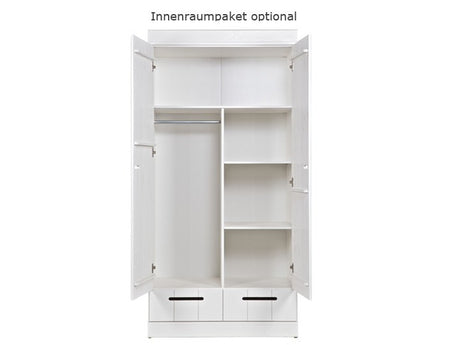 Kleiderschrank Weiß mit 2 Schubladen, Schrank, Breite 94 cm