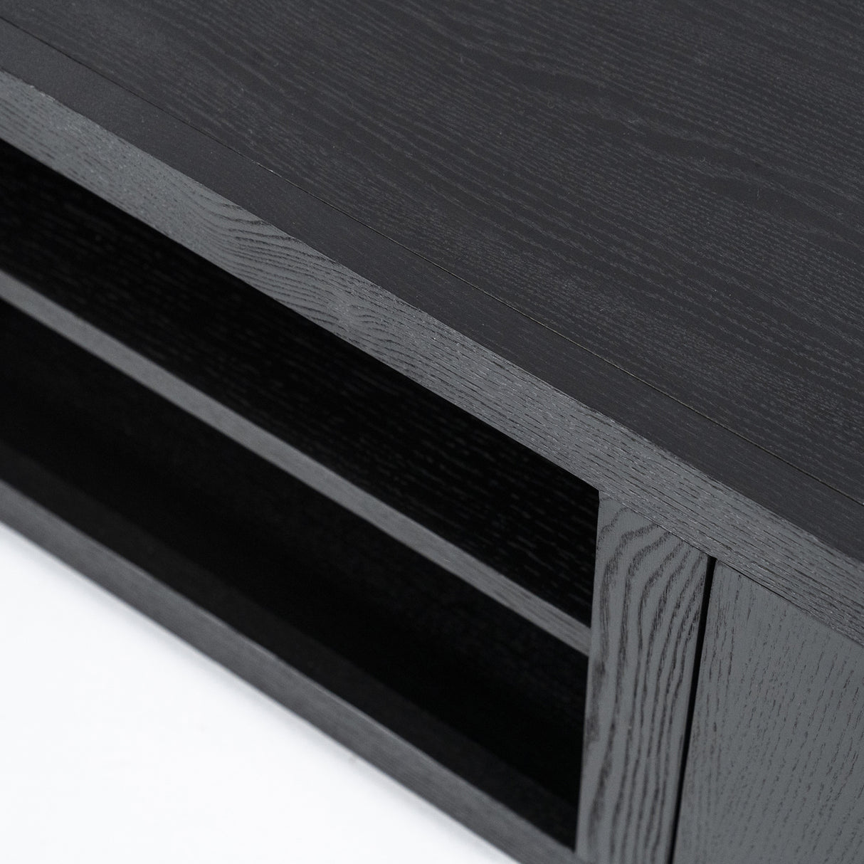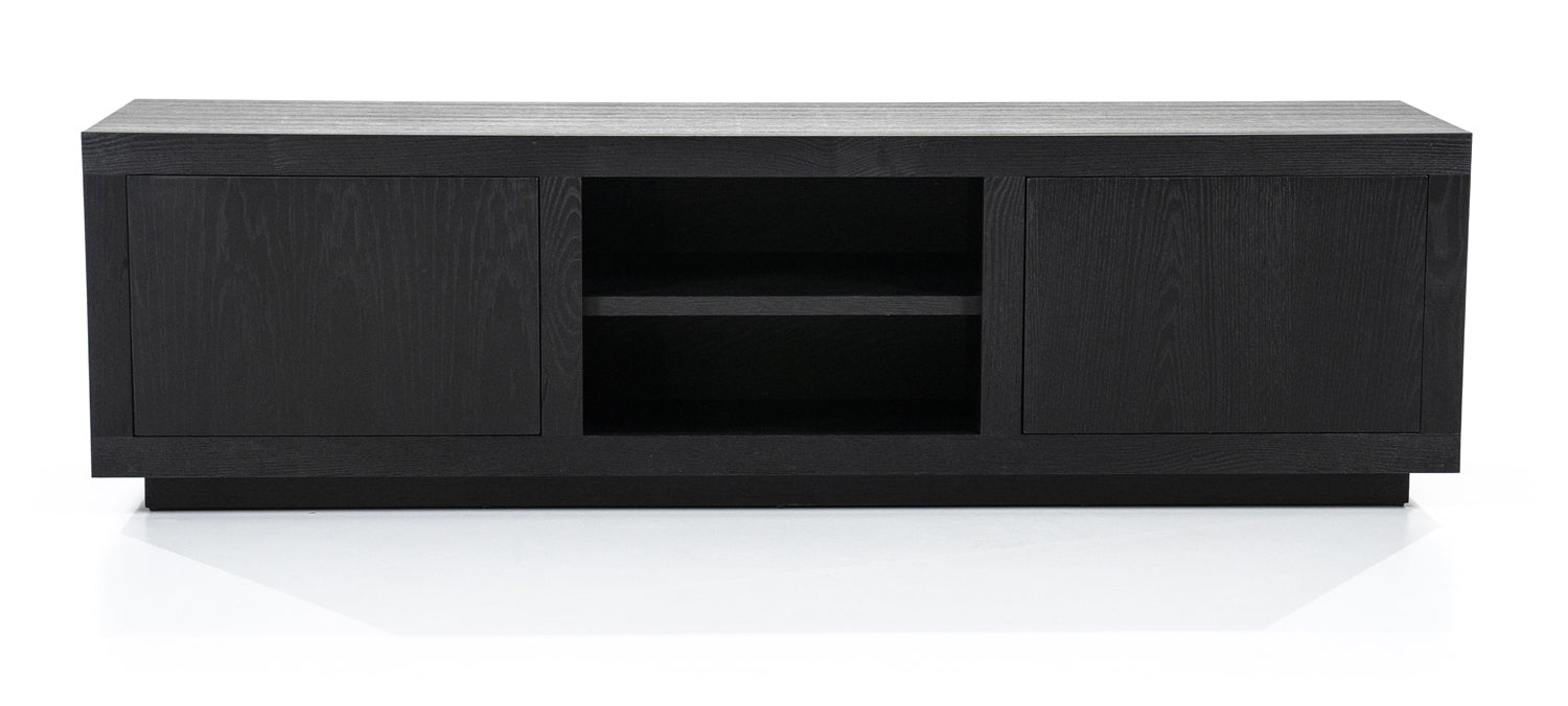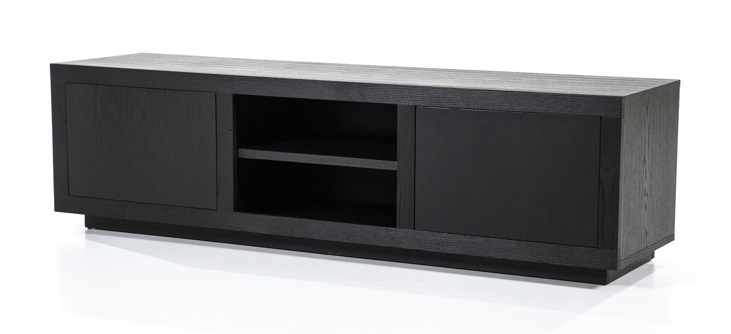 TV Schrank schwarz mit zwei Türen, Fernsehschrank schwarz Holz, Breite 165 cm