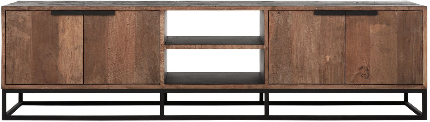 TV Schrank schwarz Naturholz, Fernseheschrank Holz Naturholz, TV Regal Metall-Gestell, Breite 205 cm