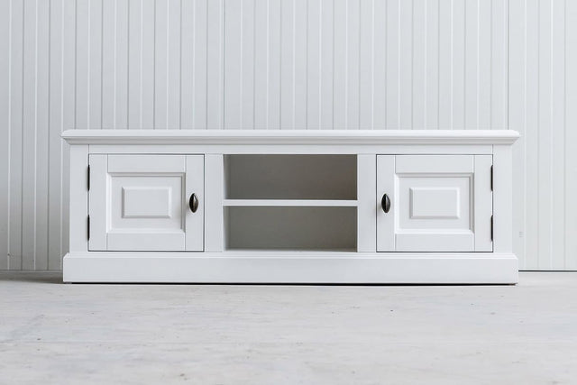 TV Schrank weiß Landhaus, Lowboard weiß, Fernsehschrank weiß Landhausstil, Breite 150 cm