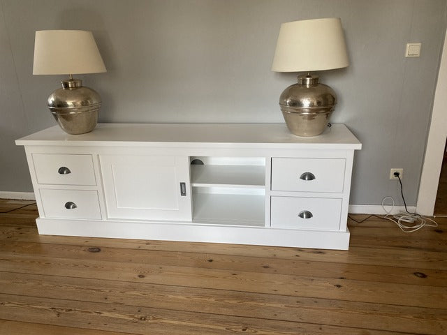 TV Schrank weiß Landhaus , Lowboard weiß mit Schiebetüren, Breite 200 cm