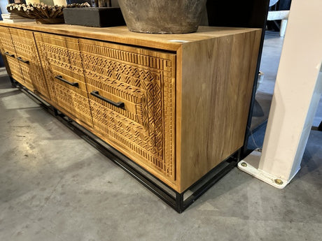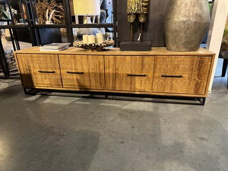 TV Schrank Handarbeit Schnitzerei Holz, Fernsehschrank Schnitzerei Naturholz, Länge 220 cm